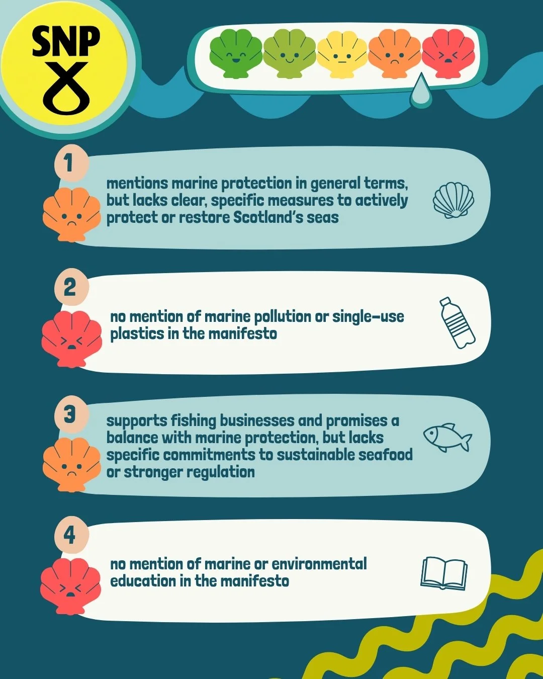 2) The SNP manifesto does not mention marine pollution or single-use plastics.